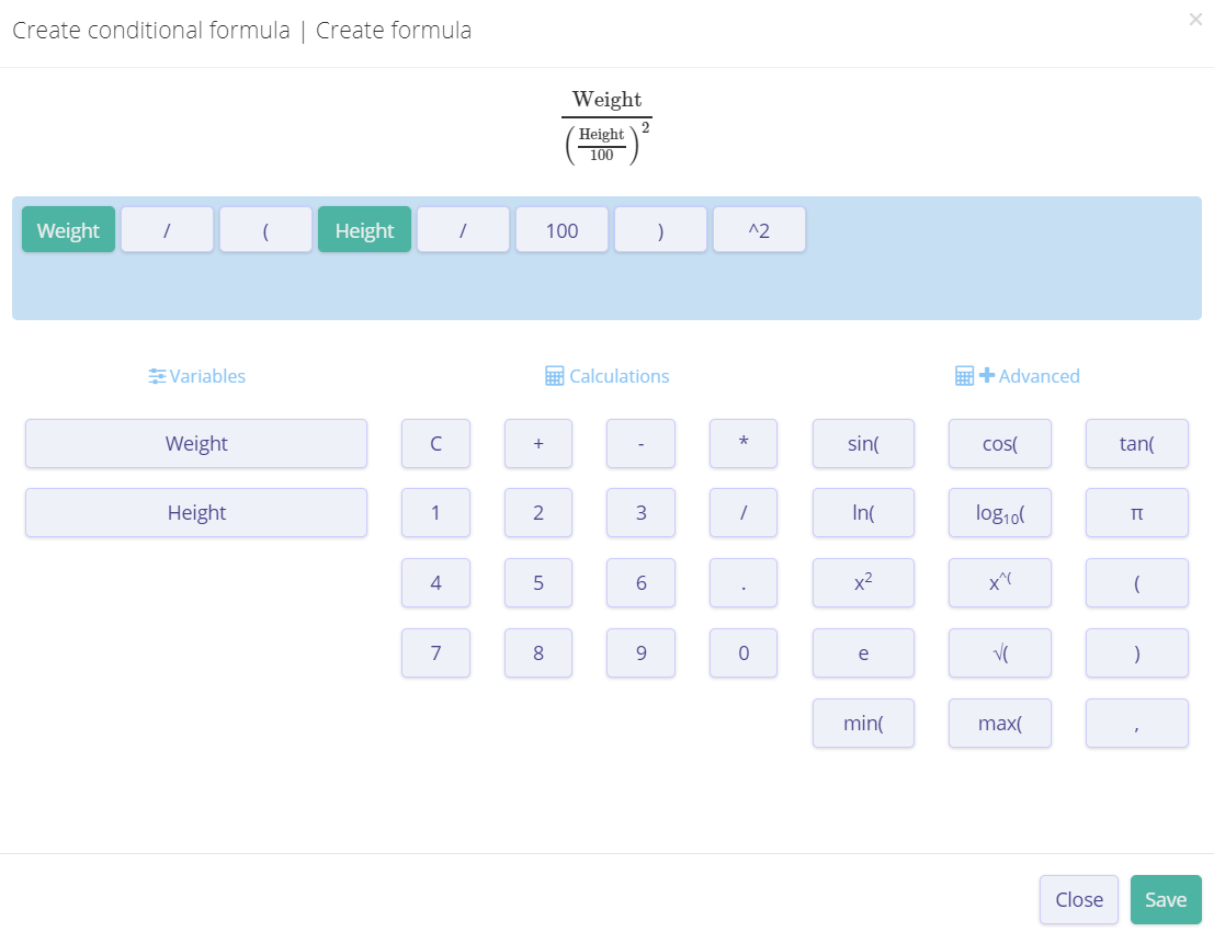 Not all models have to be very difficult. With the custom formula function, nearly every calculation is possible to add online. This example shows a step-by-step guide on how to add a very simple formula on Evidencio. The calculation of the body mass index.